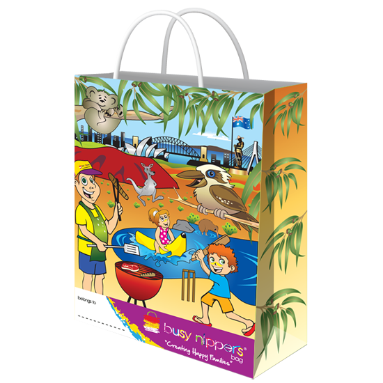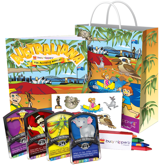 Celebrate Australia Day with our Busy Nippers Australiana themed bags. Our Australiana design will inspire children while keeping them busy for well over an hour. Keeping children happy has been proven to promote repeat family business, increase revenue and create a better environment for other guests. Can be used as a value added giveaway or create a revenue opportunity by charging a nominal price.