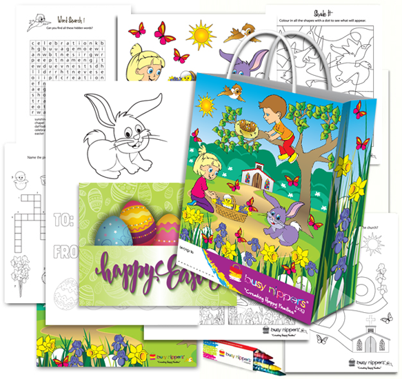 Spread the joy of Easter with our Busy Nippers Easter themed bags. Our Easter design will delight children while keeping them busy for well over an hour. Keeping children happy has been proven to promote repeat family business, increase revenue and create a better environment for other guests. Can be used as a value-added giveaway or create a revenue opportunity by charging a nominal price.